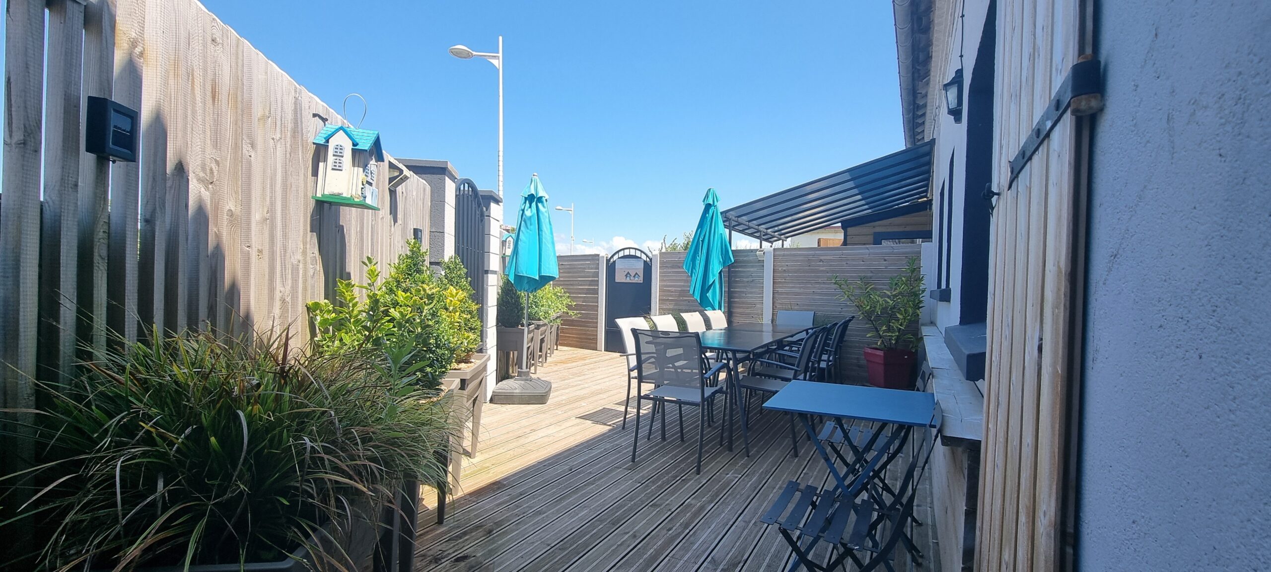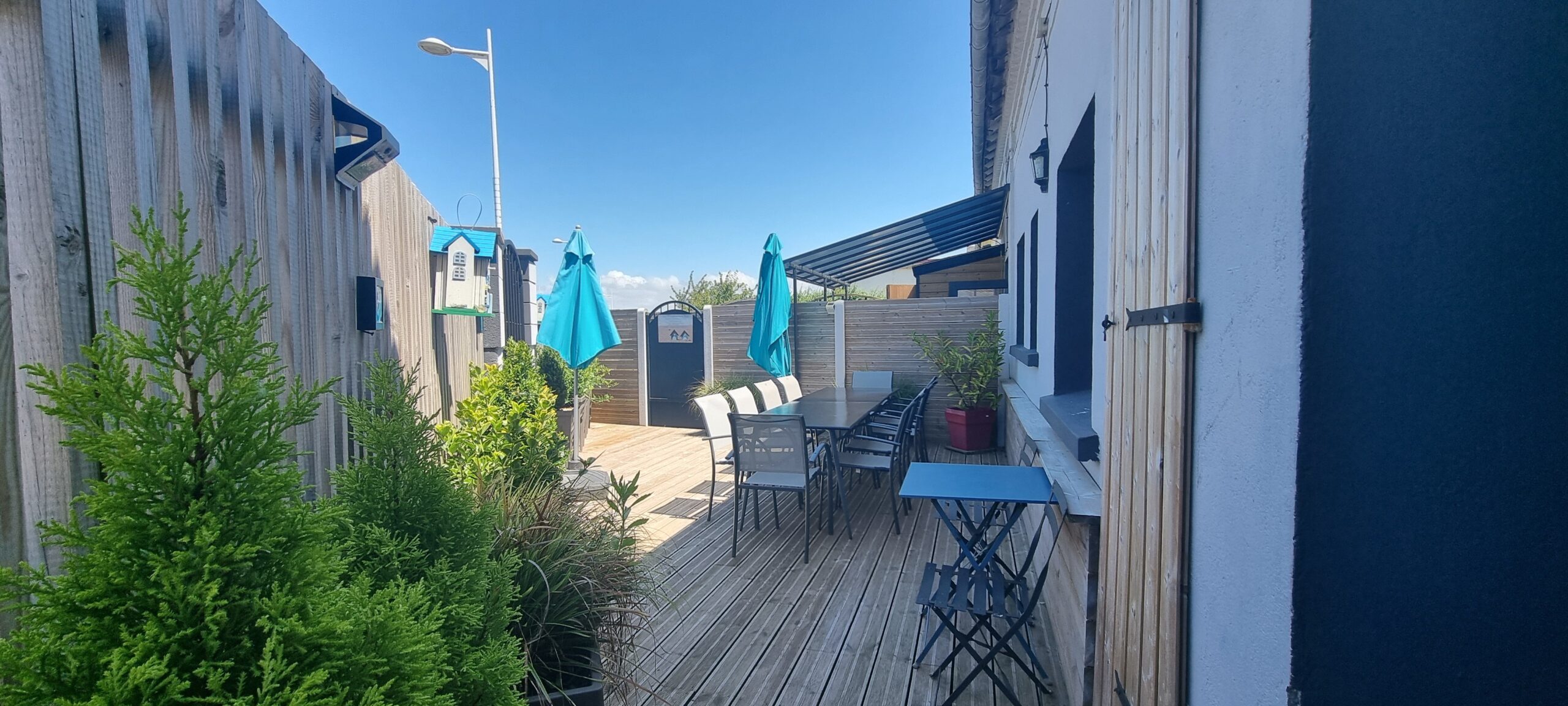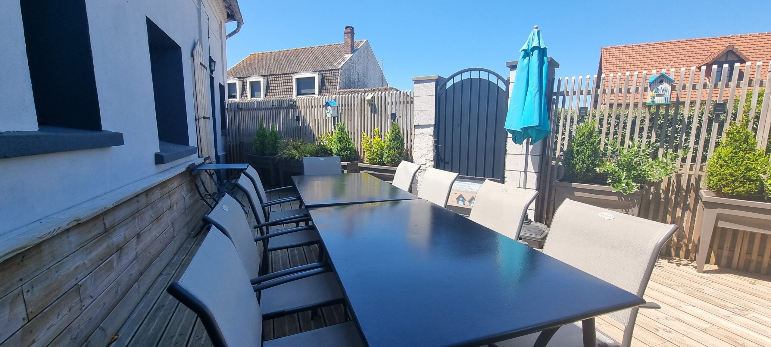 – Terrasse privative avec mobilier de jardin.