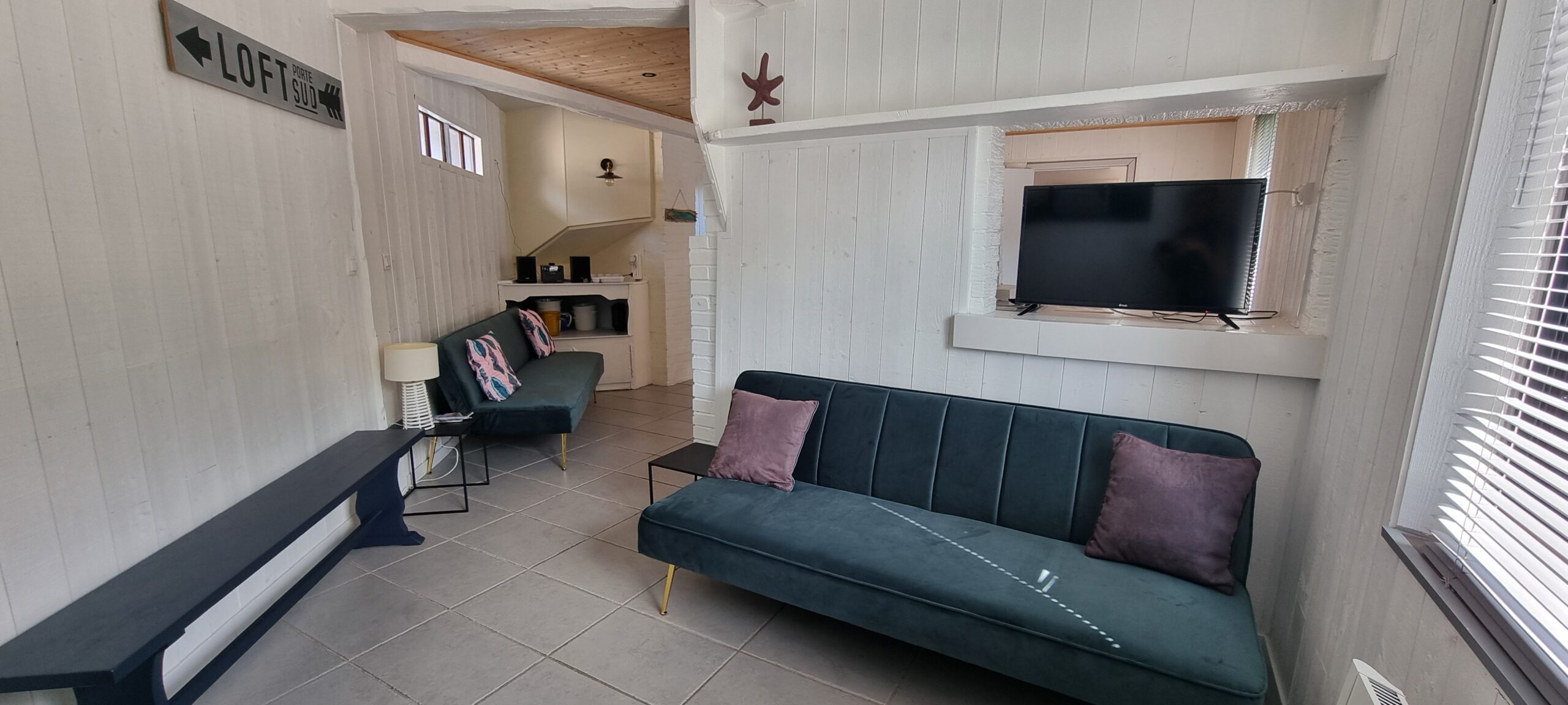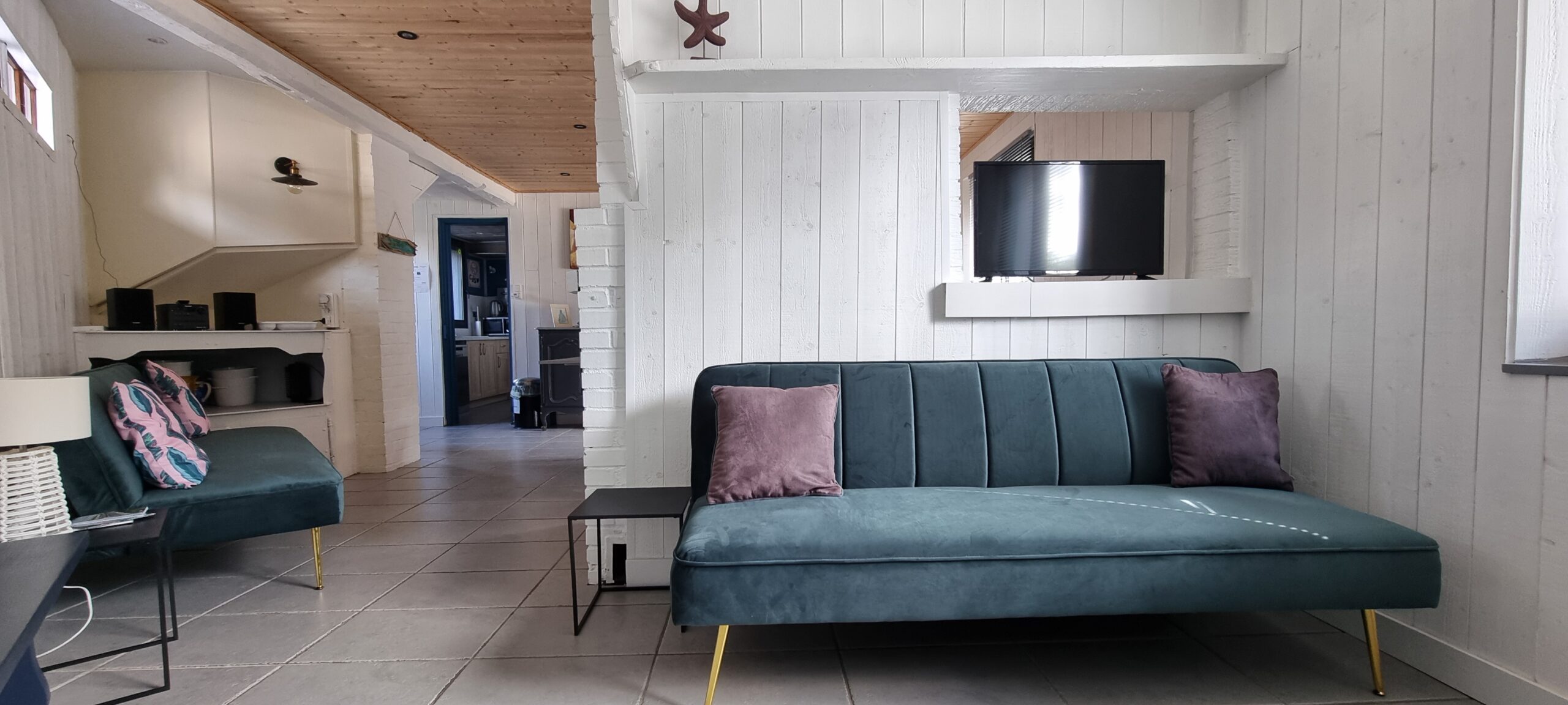 – Un salon confortable avec une télévision à écran plat.